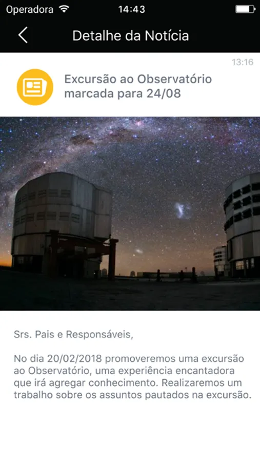 Com este aplicativo, os pais, responsáveis e professores poderão receber as últimas informações da escola, as notícias do dia a dia do seus filhos e o calendário de atividades escolares.