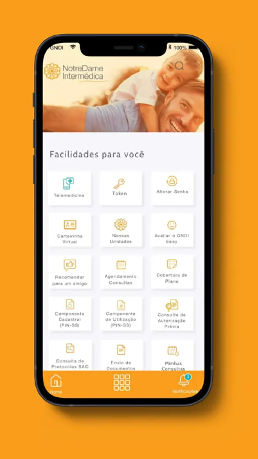 O GNDI easy é o aplicativo de saúde e odontológico criado pela NotreDame Intermédica para facilitar o dia a dia do beneficiário. De um jeito simples e fácil, você escolhe se quer ter acesso aos principais serviços do seu plano de saúde ou se quer conferir as principais funcionalidades do seu plano odontológico.