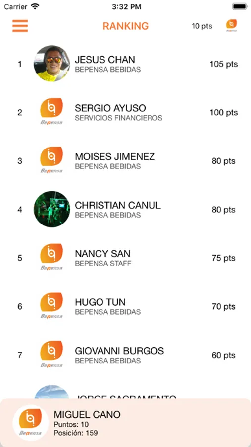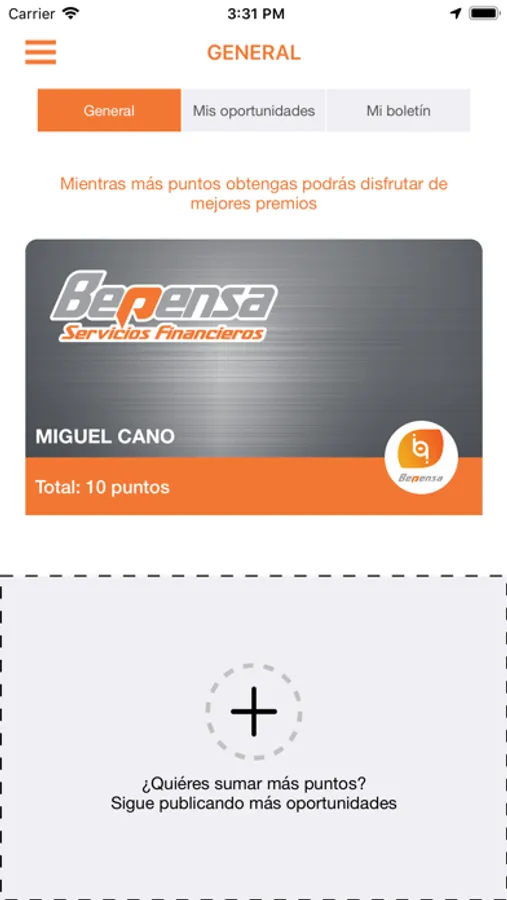 Entre más valor agregues a los negocios de Bepensa, mayor número de puntos generarás, los cuales los podrás canjear dentro del apartado del catálogo de premios y ver el estatus de tus premios canjeados.