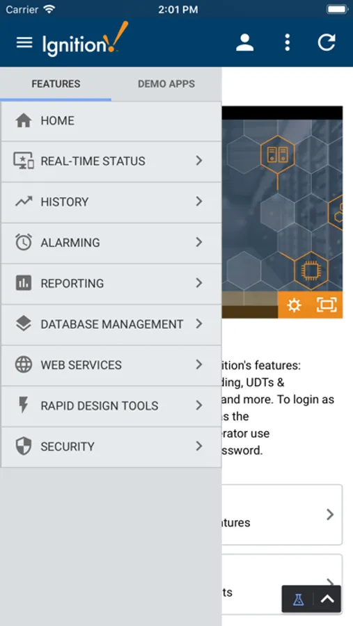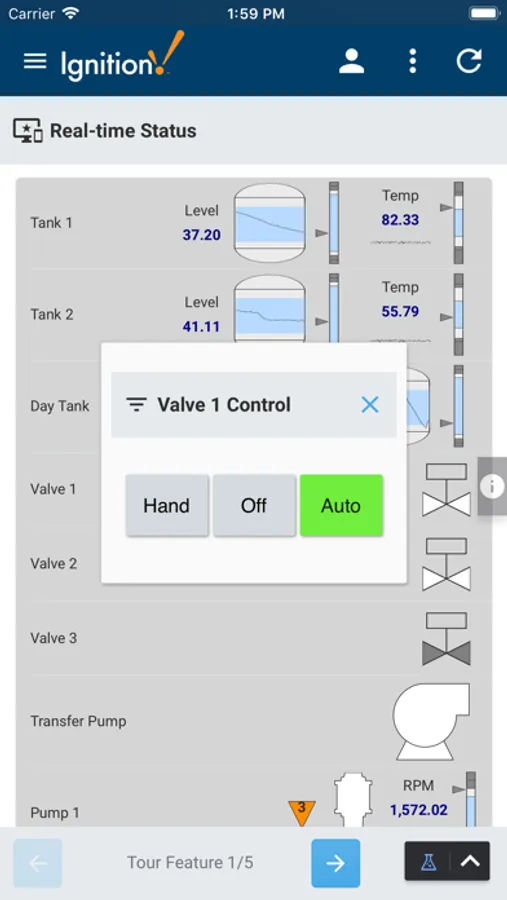 The Ignition Perspective mobile app empowers users to run Ignition Perspective sessions on their phone so they can view and control industrial processes with the touch of a finger through beautiful, responsive interfaces, optimized for mobile devices.