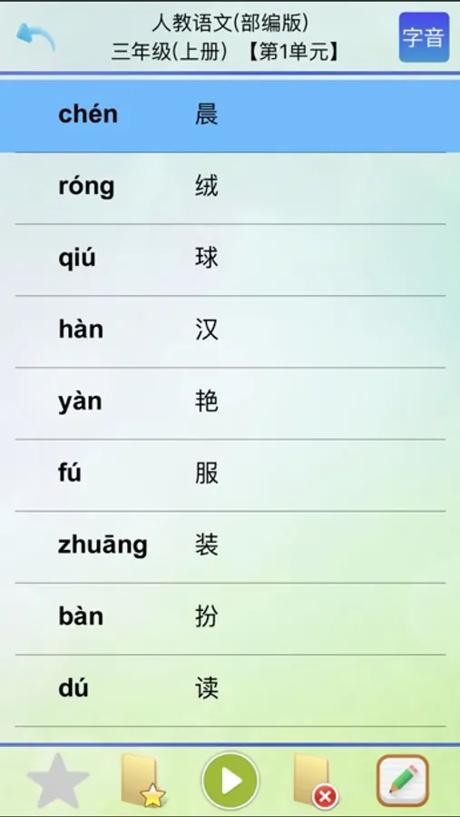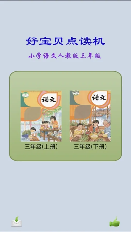 应用里是外研小学语文(部编版)三年级上册和下册课文和生字供学生学习。