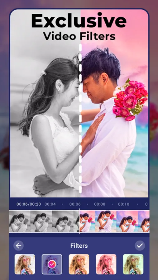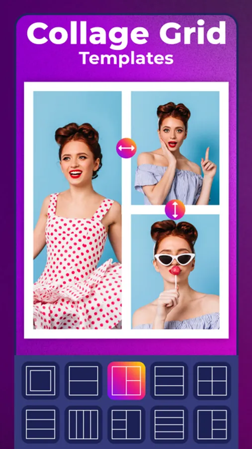 Create collage video with 50+ layouts in just few taps. Customise grid layout ratio and its background color, also change border position and curve radius.
