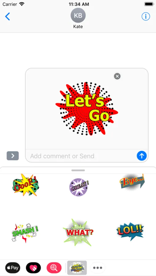 A sticker is a detailed illustration of a character that represents an emotion or action that is a mix of cartoons and Japanese smiley-like emojis. They have more variety than emoticons and have a basis from internet "reaction face" culture due to their ability to portray body language with a facial reaction. Stickers are elaborate, character-driven emoticons and give people a lightweight means to communicate through kooky animations.