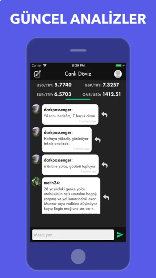 Anlık canlı olarak döviz kurlarını kolayca takip edebilir, kendi analizlerinizi yazabilir ve yorumları okuyabilirsiniz!