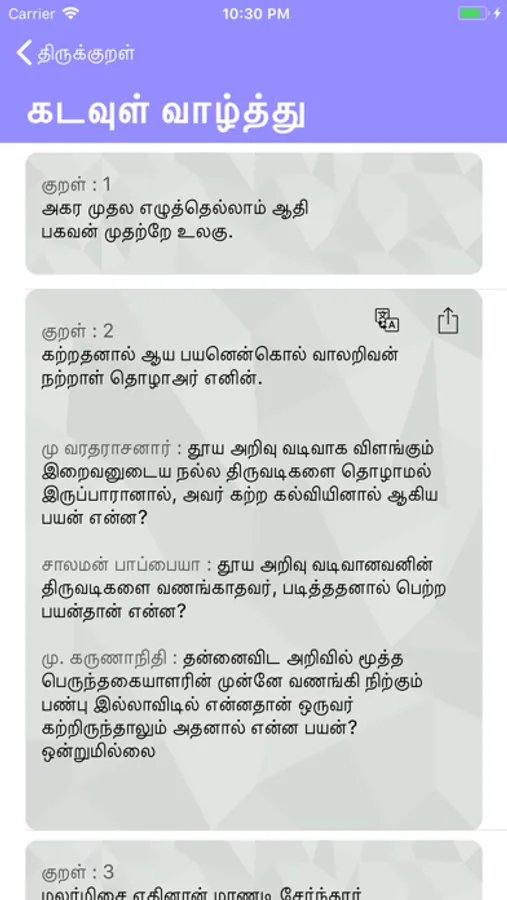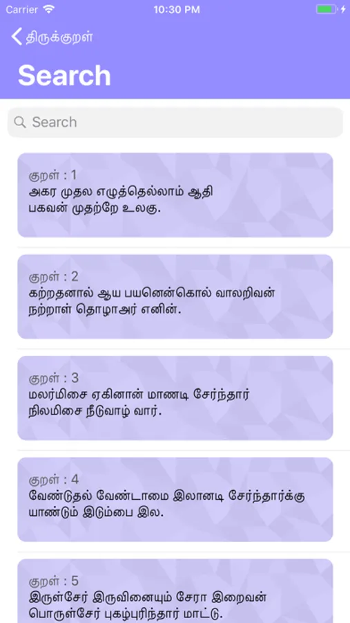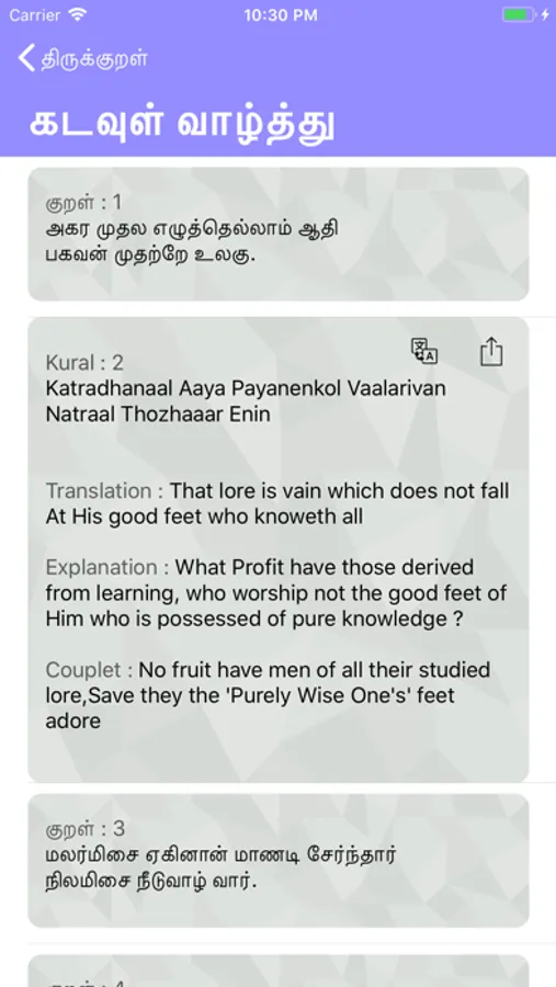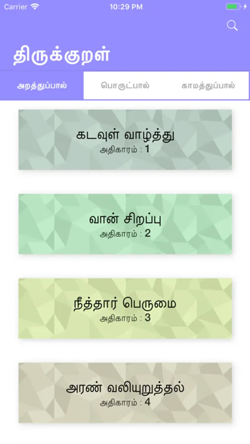 * Aratupaal: Dharma, dealing with virtues independent of the surroundings (Chapters 1-38)