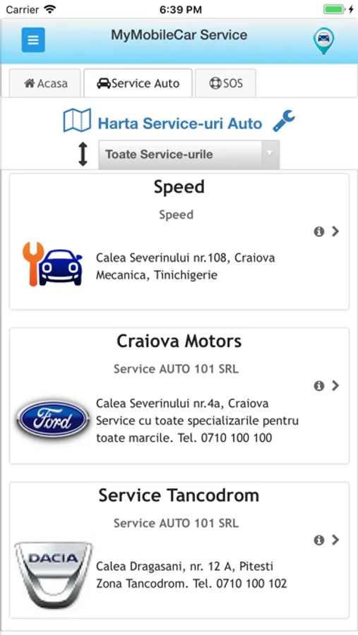 - da posibilitatea clientului sa aleaga un service functie de pozitionarea pe harta, functie de