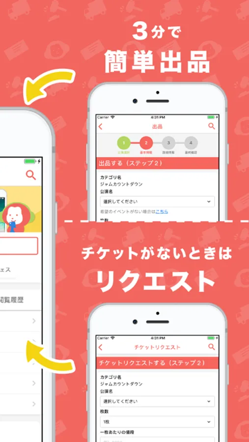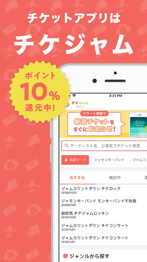 チケット取引の手続き忘れを防止する『やることリスト』や、検討しているチケットが値下がりした時に通知を行なってくれる『検討リスト』など..!そのほかにも様々な機能を使うことができます!ぜひ一度チケジャムをインストールして使ってみてくださいね!