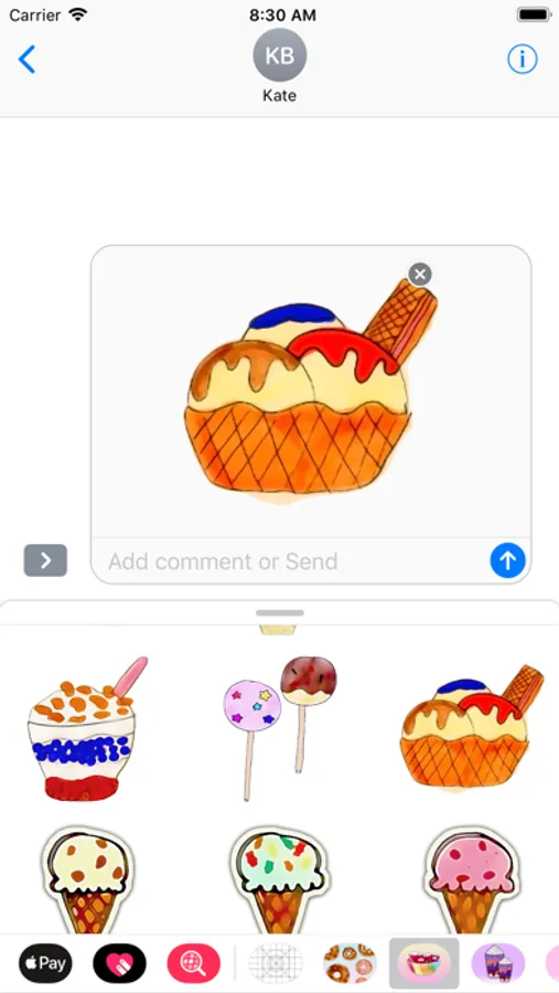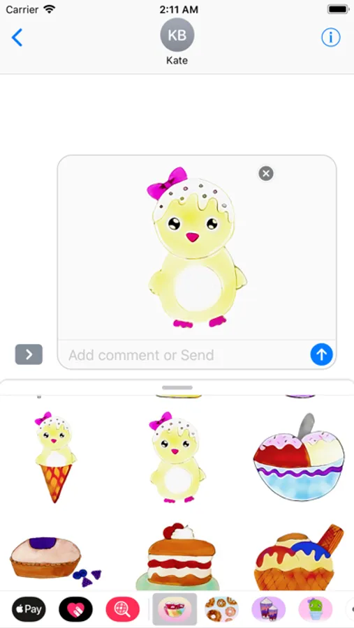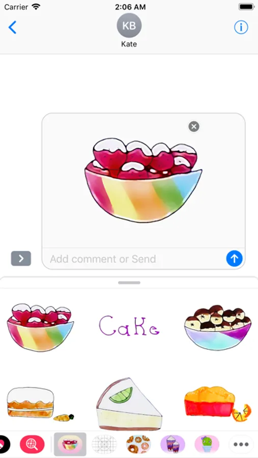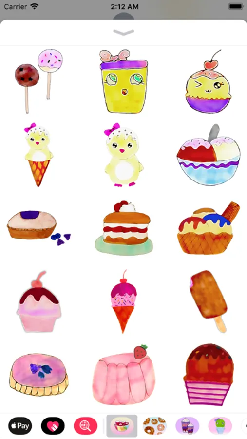 Enjoy and share the fun with these new and delicious stickers of the Ice Cream & Cake sticker pack from the Kawaii! Stickers Collection.