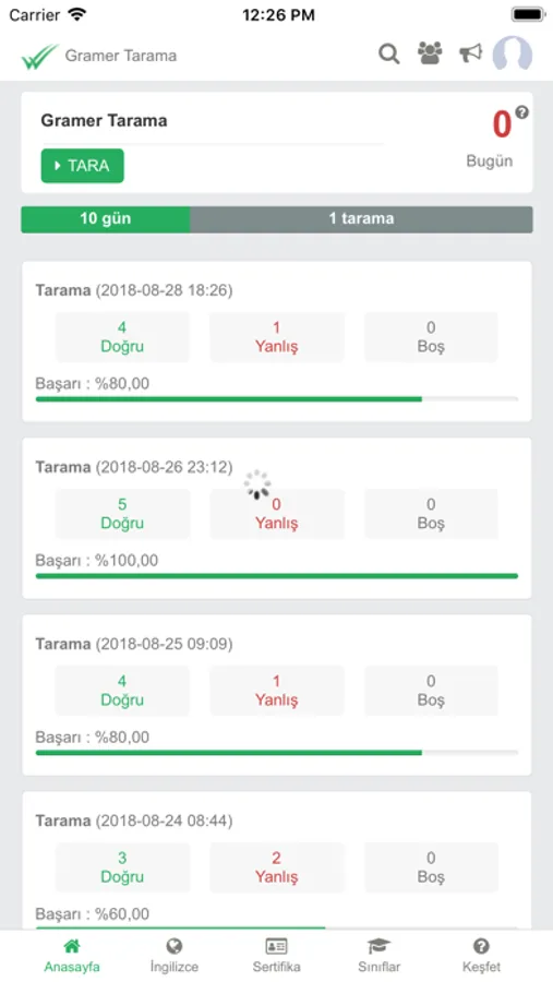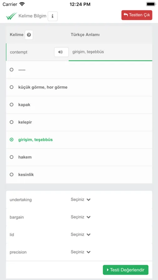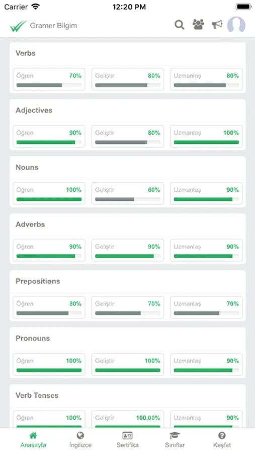 Kelime ve Gramer Bilgi Görüntüleme Sınavı teknolojimizi kullan, sadece 15 dakikada şu an sahip olduğun İngilizce Bilginin dağılımının tüm detaylarını gör. Sürece 1-0 önde başla. Tek tıkla doğrudan eksiklerine çalışabilmenin keyfini yaşa.