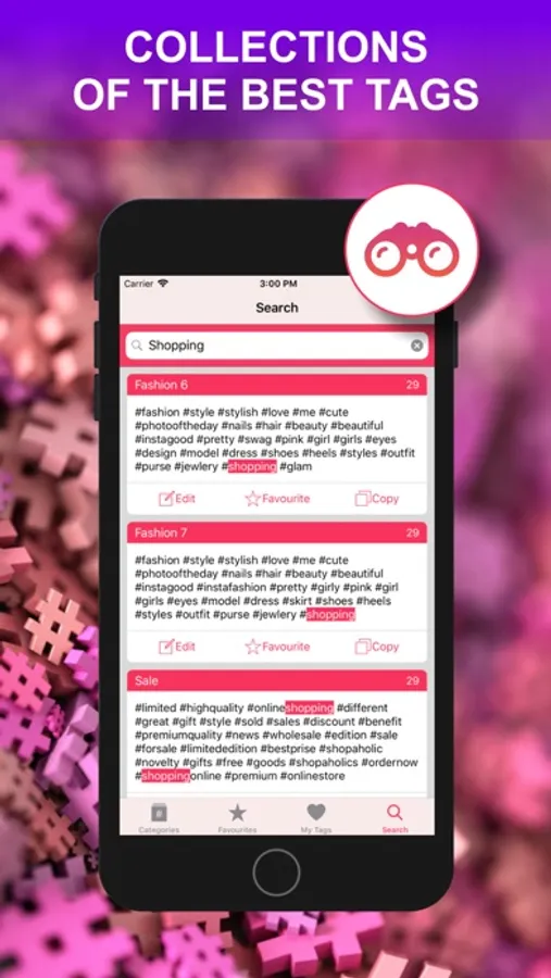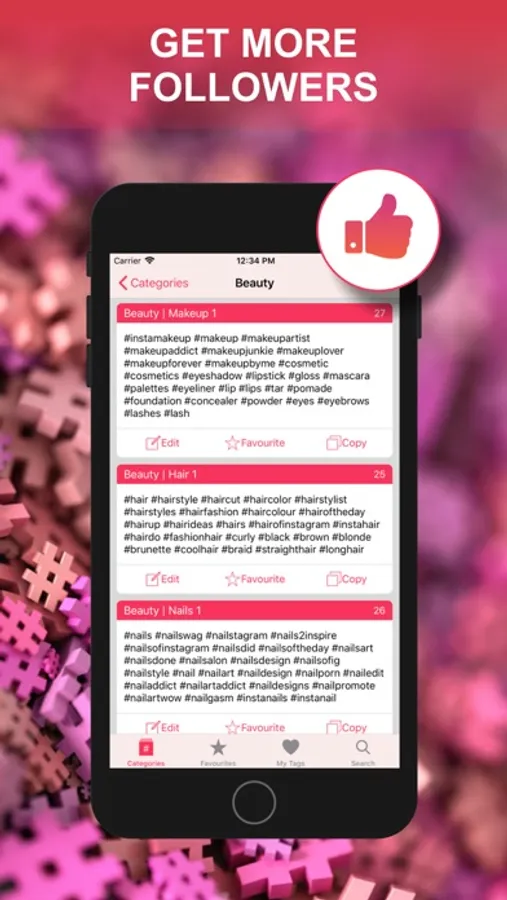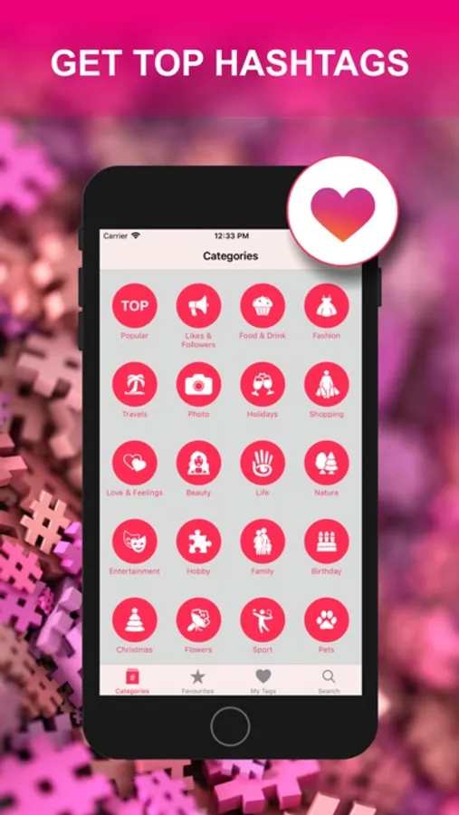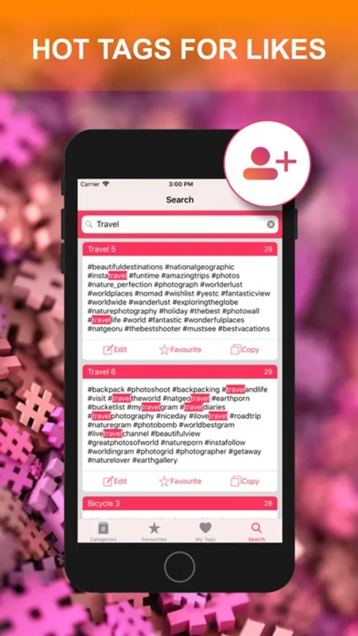 This app will help you boost your followers and gain more likes on social media. Use our catalog of hashtags to increase your visibility on Social Media.