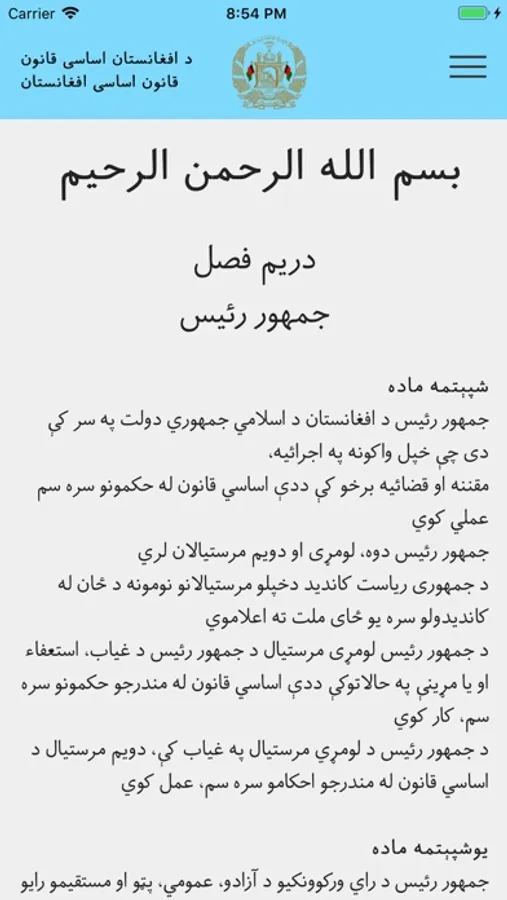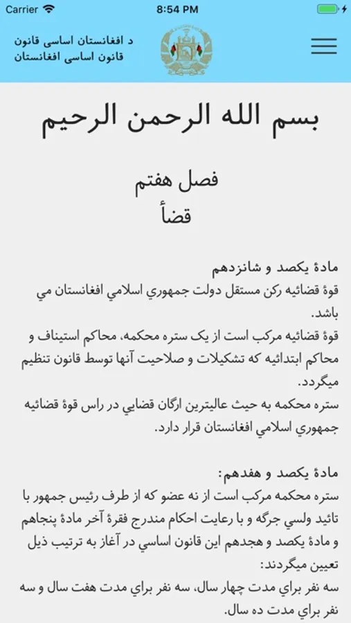 شما میتوانید قانون اساسی افغانستان را با دانلود نمودن این اپلیکیشن بخوانید