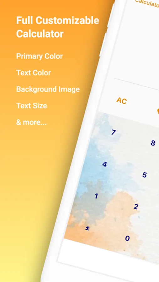 With this app, you can make your own calculator! You can change the background picture, font size, font style, color, and icon! This calculator also has a history function so you can save your calculation result.