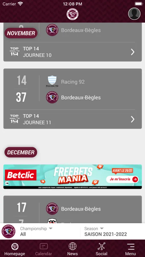 Toute l’actualité du club de rugby, participez à des jeux, gagnez des points et des cadeaux!