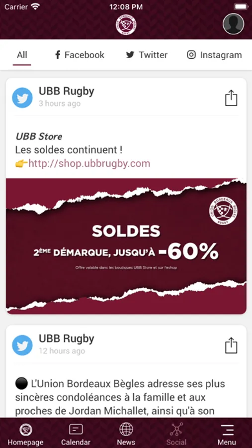 - Les news et tous les posts sociaux (Facebook, Twitter, Instagram et YouTube)