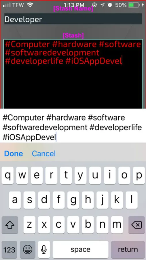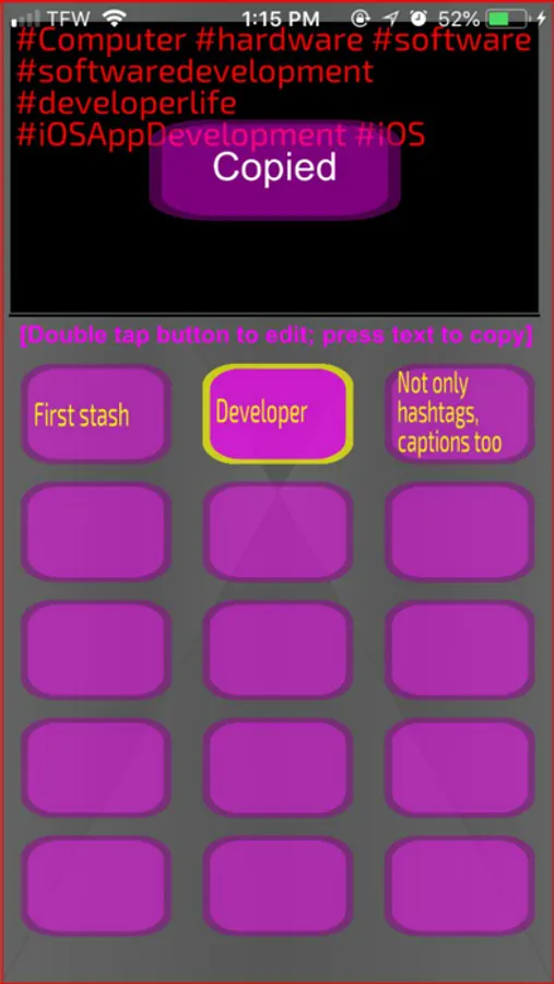 - Double tap your customized hashtag buttons at any time to edit or replace their content.