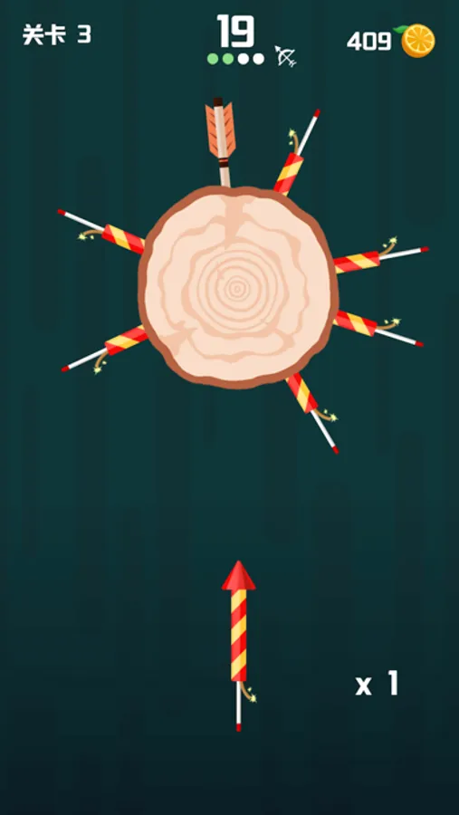Throw the arrow into the logs to break them. Slash the apples and unlock new knives.