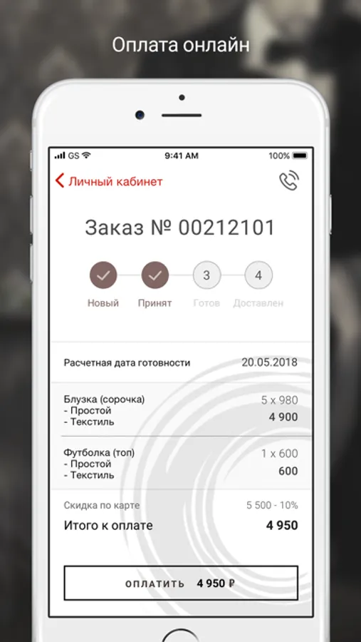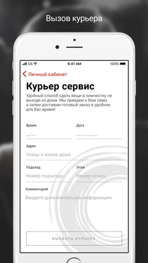 - С помощью приложения вы сможете вызвать курьера, который заберёт ваши вещи в чистку, узнать дату готовности и обратной доставки заказа.