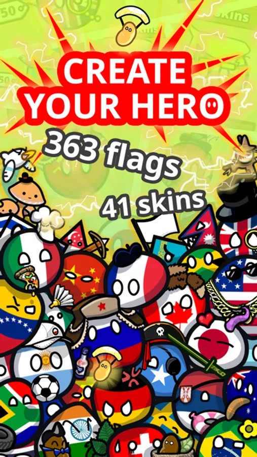 Create your own, unique Countryball hero with hundreds of flags and items and play online with your friends in the new Battle Royale mode. Beat the global high score in a variety of other crazy mini games and earn weekly rewards. This app also includes a meme creator, so you can make and share creative Countryball memes with the world directly to your favourite social media.