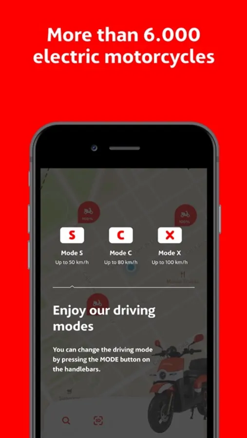 Rent 125cc equivalent electric motorbikes, with two driving modes so you can optimise your consumption and ride at your own pace, paying only for the seconds you use. Choose Standard mode and ride your electric moped at speeds of up to 50km/hour using our most eco-friendly option or select Custom mode if you need to reach 80km/hour.