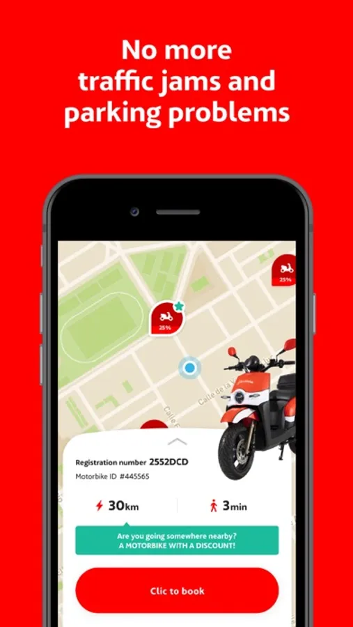 3. Find and book your nearest shared motorbike, put on your helmet and... enjoy!