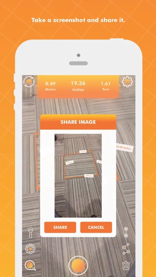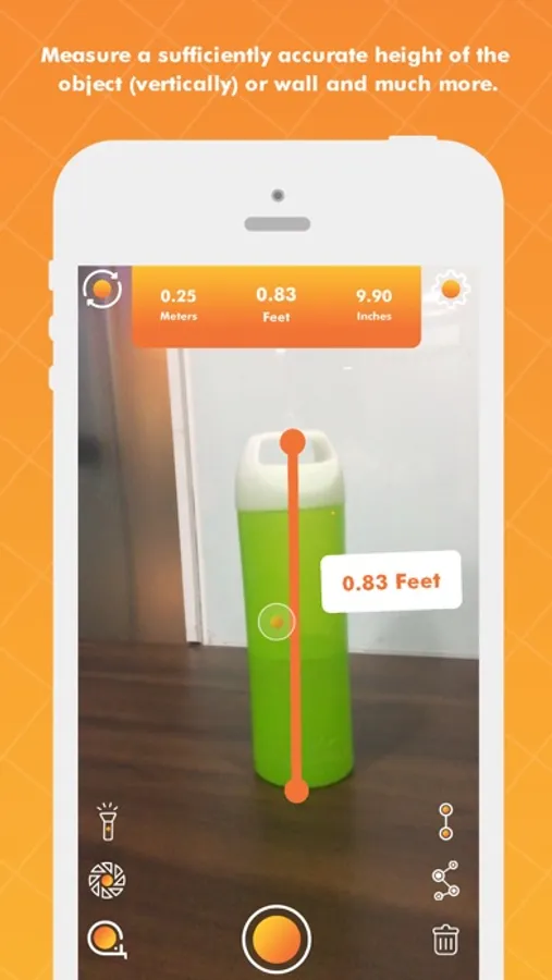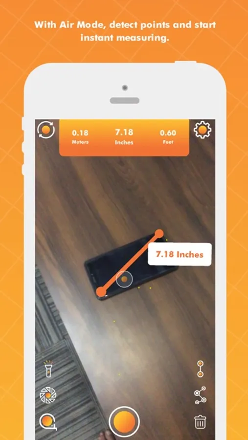 This app uses augmented reality technology (AR) to measure different things in the real world with your smartphone’s camera. Simply target aim on the detected horizontal or vertical surface and start measuring!
