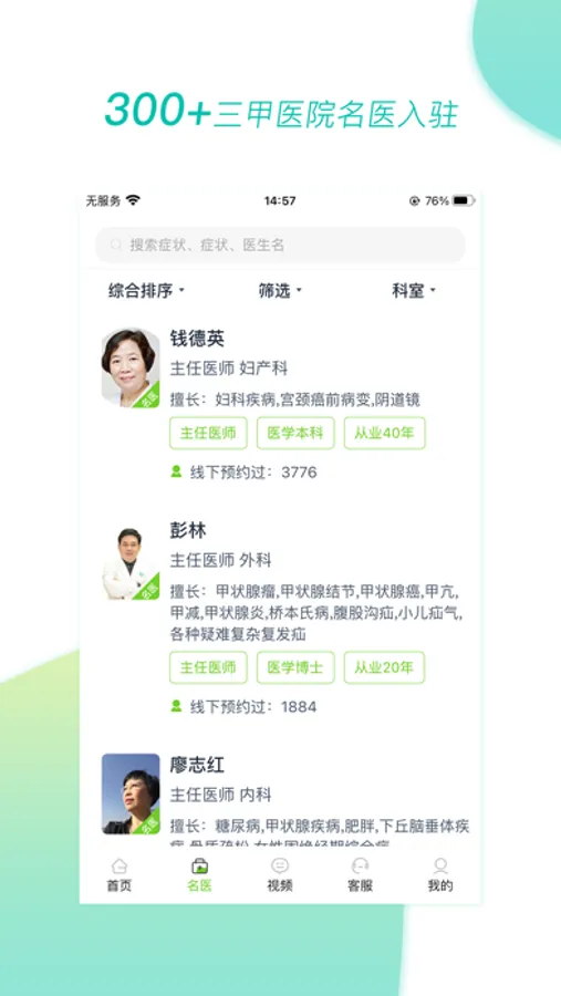 【预约挂号】可预约300+来自全国三甲医院医生,并到广州医和你诊疗中心就诊;