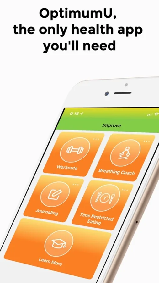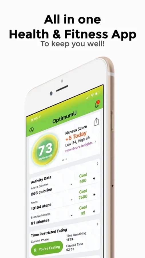 With over eight features for improving and maintaining your health, OptimumU is the complete app for Health & Wellness. Health & wellness app includes everything from workouts, fasting, gratitude journaling, relaxation breathing, personal & social challenges, and more all in one app.
