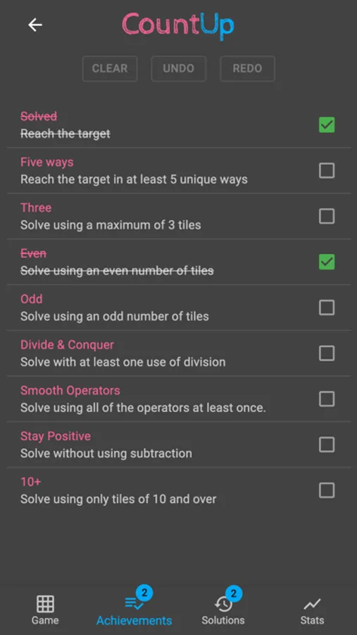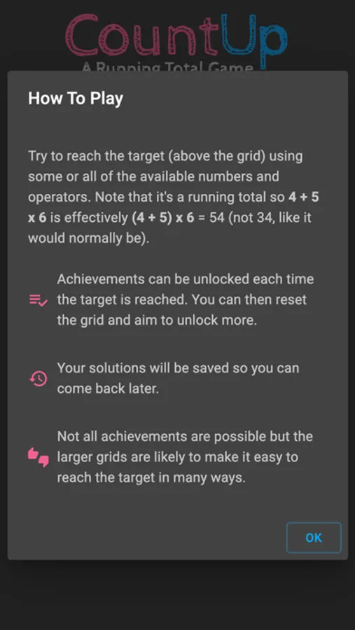 Achievements can be unlocked each time the target is reached. You can then reset the grid and aim to unlock more.
