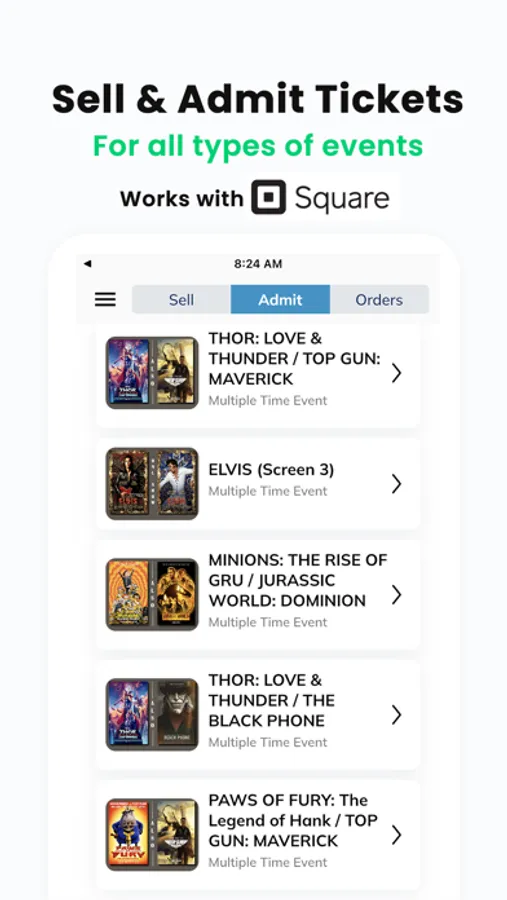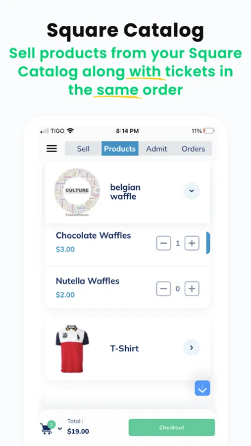 - The event organizer app supports the Square Catalog, so you can merchandise too.