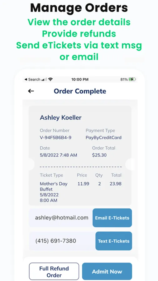 - Solve Customer Requests Fast: Quickly look up orders, and reissue, cancel or refund orders on the spot.