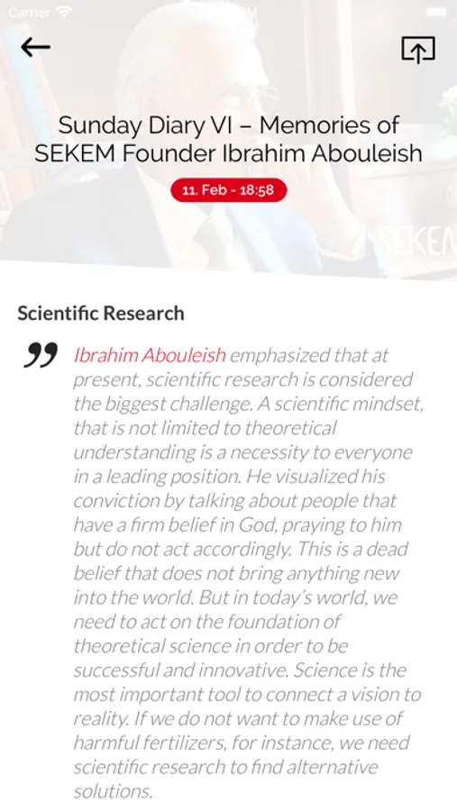 By using this app you will stay up to date and have all relevant information about SEKEM and its activities with you wherever you are. The integrated push notification option will offer you to not miss any new article.