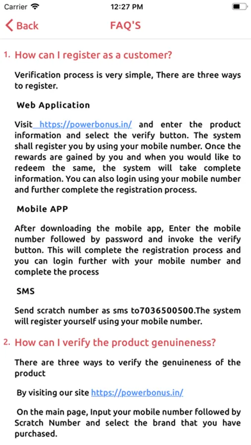 Power Bonus provides its clients a unique and secure scratch hologram which is impossible to replicate. The holograms work as a unique identity of genuineness. The process is very simple. The buyer enters the scratched number by, sending the display number via SMS, or through the website or the mobile app. This is will immediately tell the buyer if the product is genuine. The buyer also accumulates reward points with every verification. These points can be redeemed for gifts.