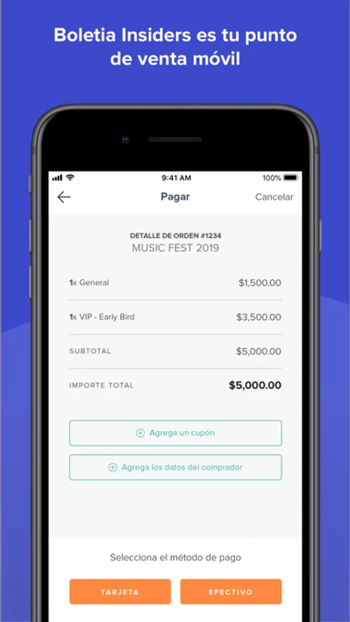 Boletia Insiders te ayuda a vender más boletos con un proceso de compra rápido y eficiente. Crea una red de vendedores y/o asigna módulos de venta de tu preferencia (tiendas, taquillas, venues, etc). Brinda a tus asistentes la opción de pagar en efectivo y con tarjeta presente. Boletia es una plataforma para la creación de eventos y venta de boletos de una manera práctica, accesible y segura.