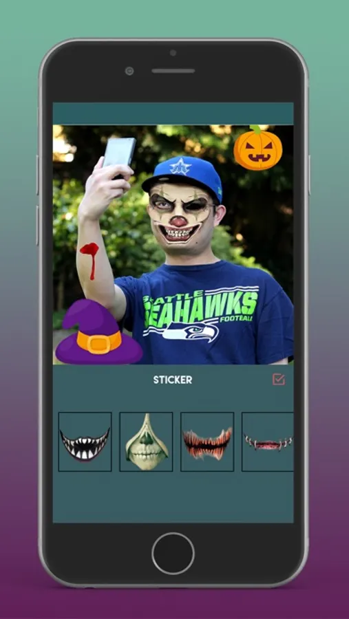 Halloween Photo Editor Scary Mask is free apps & your new virtual "Halloween costume"! You can Have a halloween costume ideas , You can also put stickers of bloody wounds with ghost and Joker Mask, a vampire booth, a werewolf and a witch and also Zombie, stitches, etc Add spooky photo stickers that will transform you and win any contest! Show off your new trick or treat masks to everyone you know!