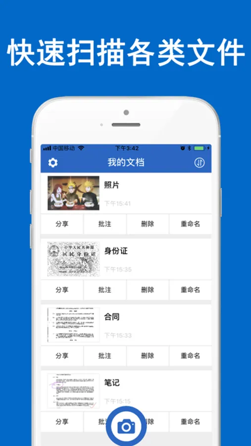 《文件扫描仪》您的随身拍照扫描仪。扫描文档、合同、收据、票据、发票、白板讨论、名片、证书、照片等等。轻松扫描,保存和分享PDF或JPG格式的扫描件,还能精准提取扫描件的文字。