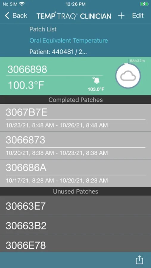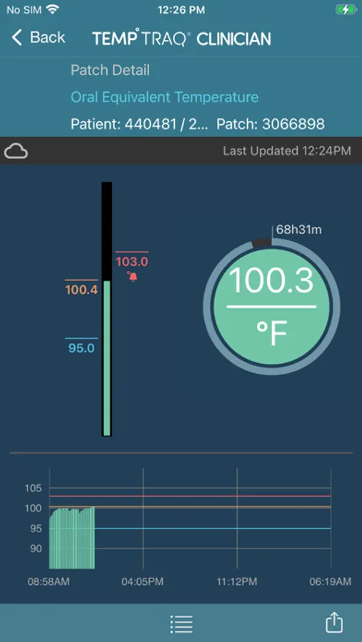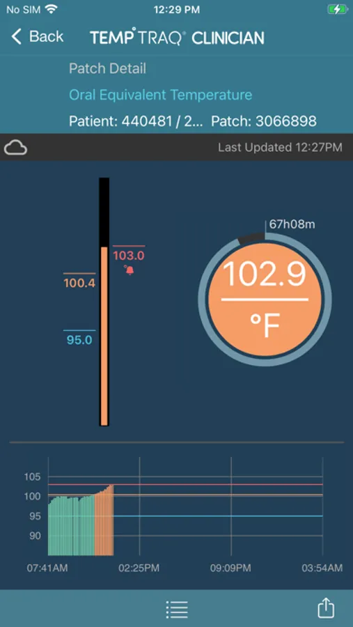 The TempTraq Clinician application does not collect Bluetooth data from the patch. The TempTraq Clinician application provides the clinician with the ability to add patients and patches, and to monitor patient temperature remotely by communicating with the TempTraq Connect cloud service.
