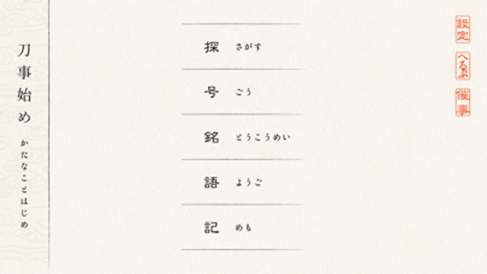 刀事始めは、刀剣ファンのための日本刀の鑑賞のお手伝いをするアプリです。日本刀を鑑賞するためにポイントとなる「姿」「地鉄」「刃文」や「銘」から刀剣の解説を読んだり刀の感想や鑑賞した刀の画像をメモで記録したりすることができます。メモを保存することで自分だけの刀鑑賞ノートができます。 鑑賞ページは課金することにより押形画像が表示されます。