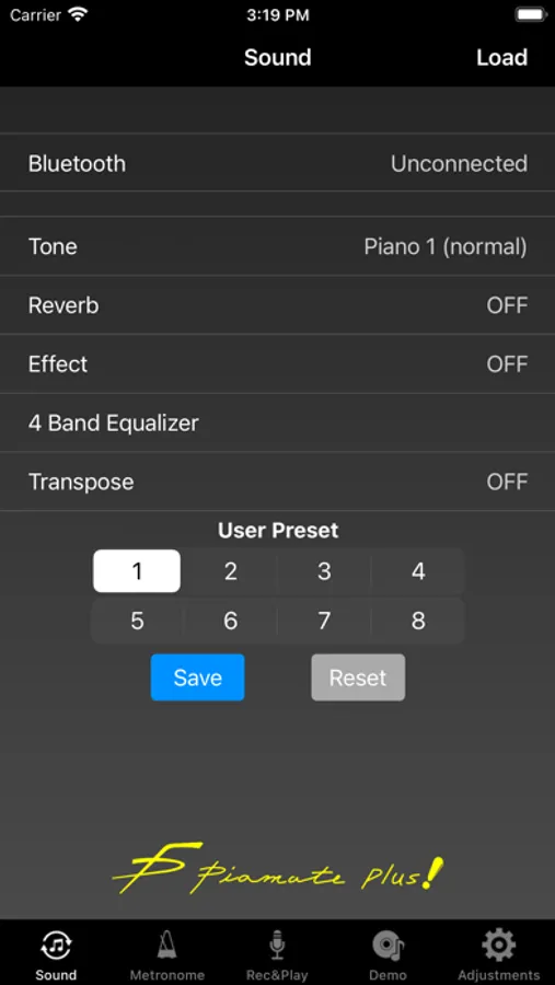 With simple operation of app, you can adjust tone, reverb and other sound preferences, metronome tempo, rhythm and so on.