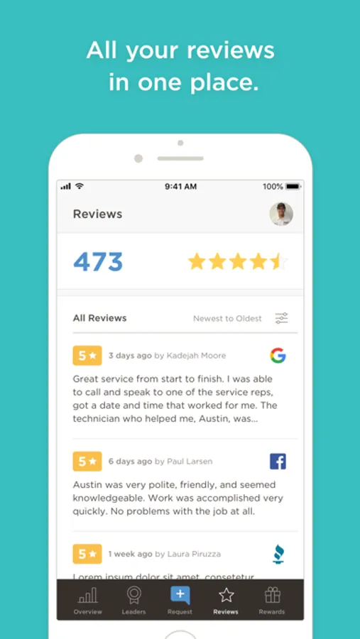 Use the ReviewBuzz app and you’ll easily get more reviews for your company - and more rewards for yourself. Quickly send review requests when you finish a job. Then track your customer feedback, your points, your rewards and your online reputation anywhere at any time. It’s fast, easy and powerful. Download it today.