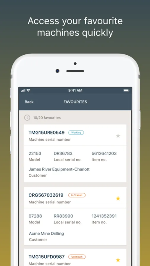 • Follow frequently visited machines by adding them to favorites list.