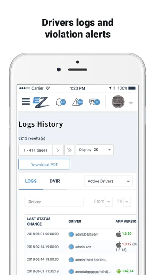 •View drivers current and past logs