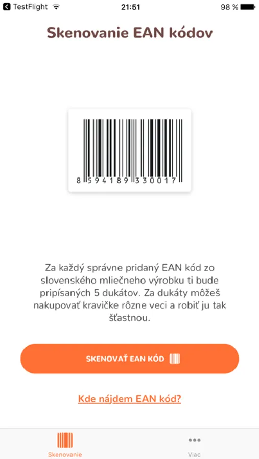 Mobilná aplikácia Adoptuj kravičku – Skener uľahčuje zadávanie EAN kódov v hre Adoptuj kravičku (www.adoptujkravicku.sk). Skenerom jednoducho naskenujete EAN kód slovenského mliečneho výrobku označeného SK oválom, ktorý sa buď priradí k rezervovanej kravičke alebo sa zamení na dukáty v zmenárni hry Adoptuj kravičku. Za dukáty potom môžete kravičke nakupovať vecičky a hrať sa s ňou. V hre sú podporované slovenské mliečne výrobky. Adoptuj kravičku – Skener vám zabezpečí plynulejšiu zábavu s kravičkou v nekonečnej hre.