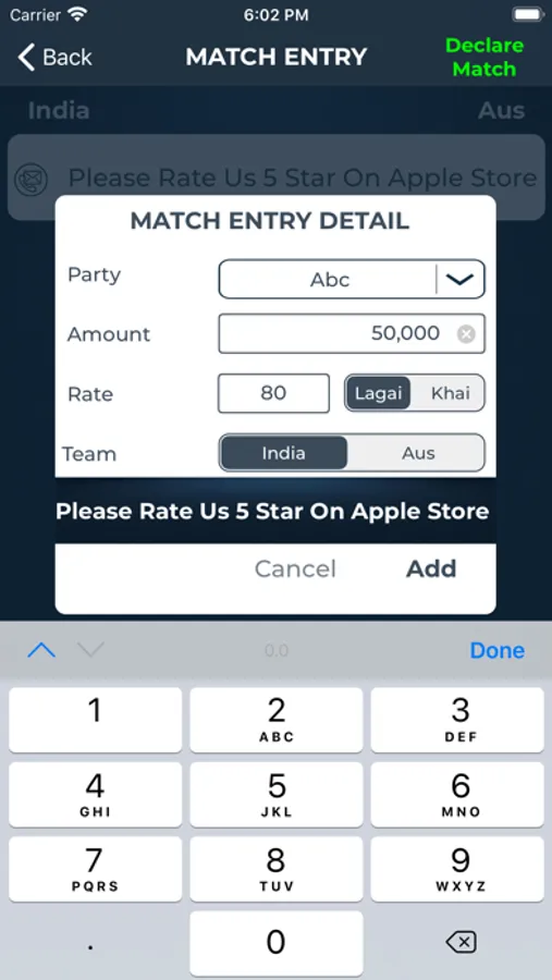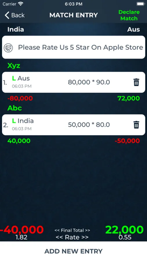 Cricket Hisab Kitab mobile app shows you ball by ball Match updates as well help to calculate your private bet.