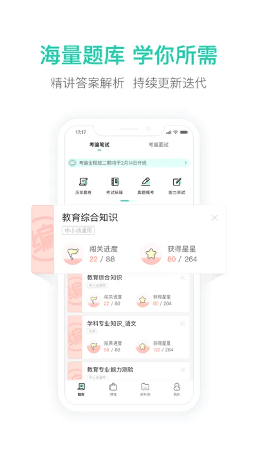 覆盖教师招聘各学段考试科目(语数外音体美幼),刷题攻克考点,笔试面试二合一,科学高效备考教师招聘!