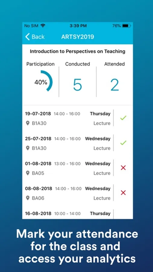 All you have to do is sign in with your University ID and password, then sign in for attendance once the class is unlocked by your lecturer! It’s that easy. You can also access the analytics and summary to see your overall attendance for the semester.