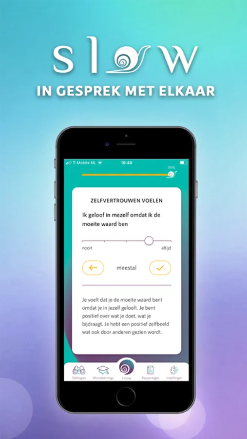 De Slow reflector is een hulpmiddel voor reflectie en feedback. Aan de hand van stellingen geeft de reflector inzicht in wat jouw persoonlijke- en professionele ontwikkeling stimuleert dan wel beperkt.