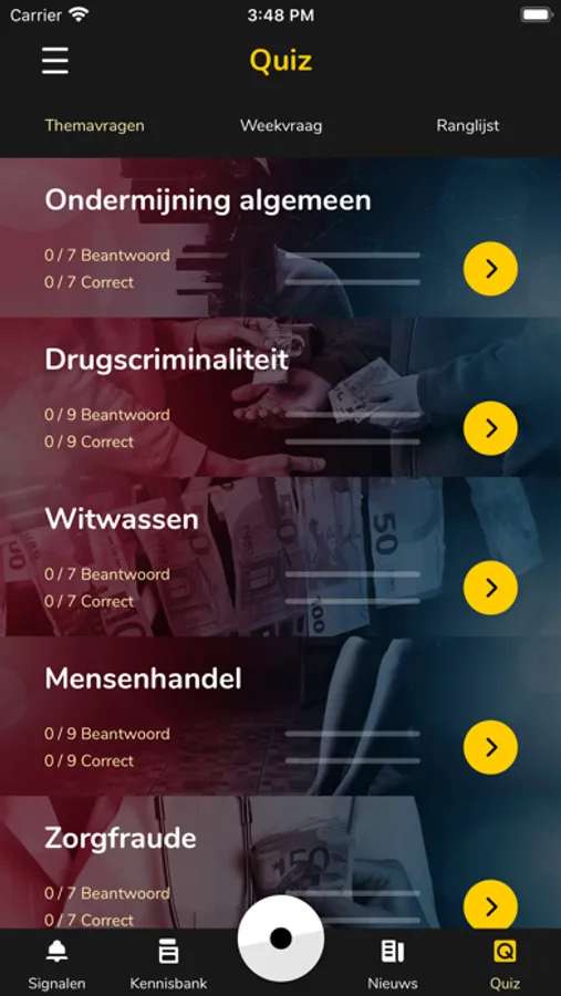 • Quiz: een spel met vragen over verschillende ondermijningsthema’s, inclusief een