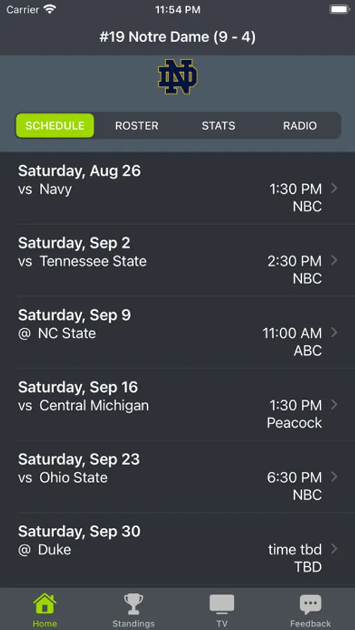 "...love the TV schedule. No longer have to look at my cable guide to look at my game schedule during College Game-day."