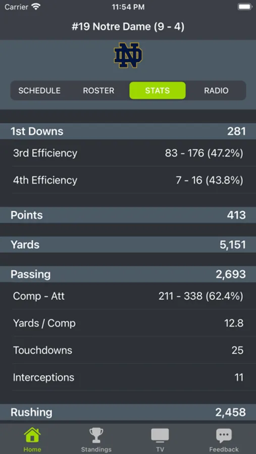 Notre Dame Football provides scores, links to live radio, schedules, tv channels, player profiles, and game matchups in one location.