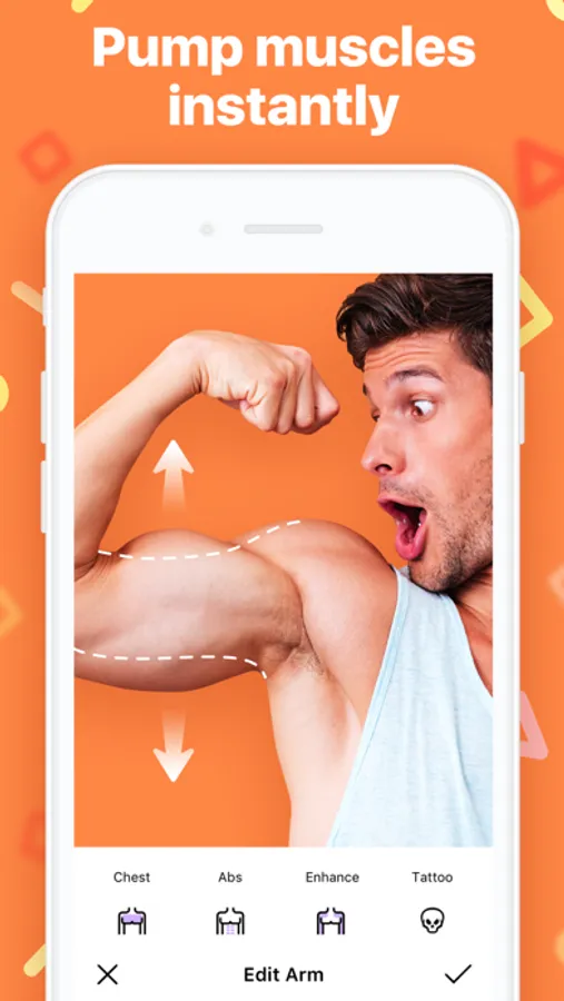 Photo editing has never been so easy! Whether you want to build your muscles, try on new hairstyle, emphasize your stomach or correct any part of your body, MAKEOVER will make it happen.